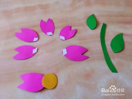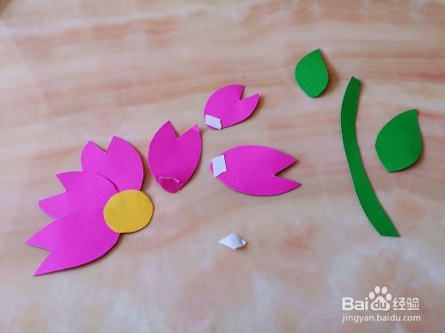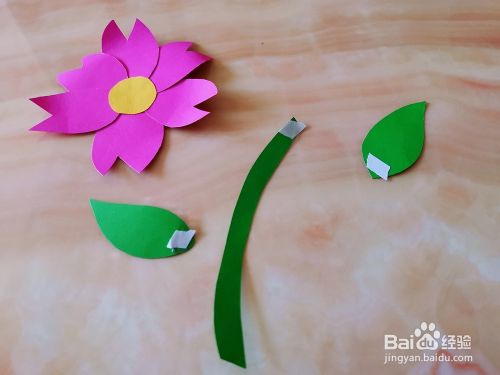 叶片底部和叶茎顶部贴上双面胶,组合粘贴在一起。