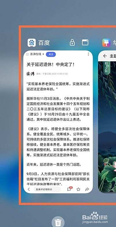 1、从屏幕底部中间位置上滑并停留1秒(手势导航时)或者点击屏幕下方的方块键(虚拟导航键时),