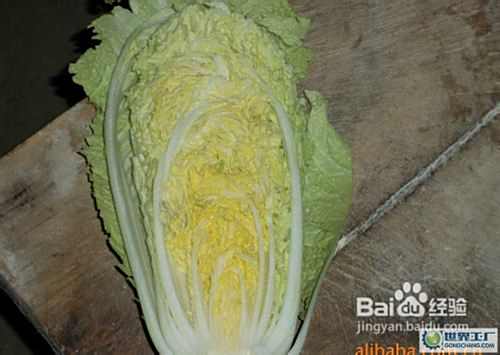 摘掉大白菜外面的枯黄叶子,切掉底部凸起的根。此外把缸刷干净。