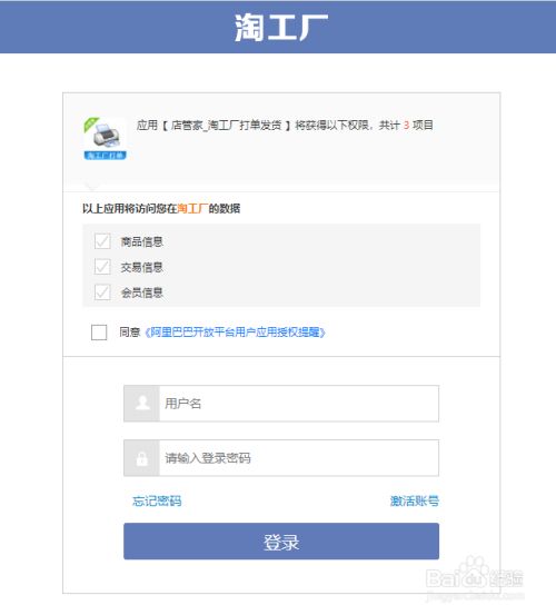 进入页面后登陆淘工厂帐号,进入店管家打单后台。