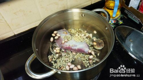 锅中放入足够的水,除西葫芦外的所有材料,盖上盖子加热15分钟,转中火45分钟。