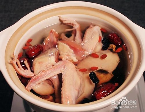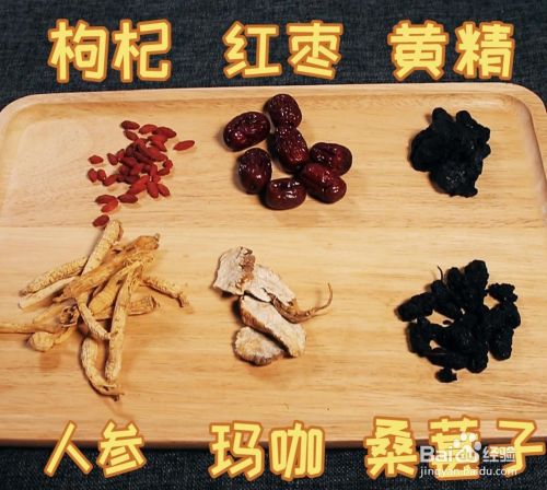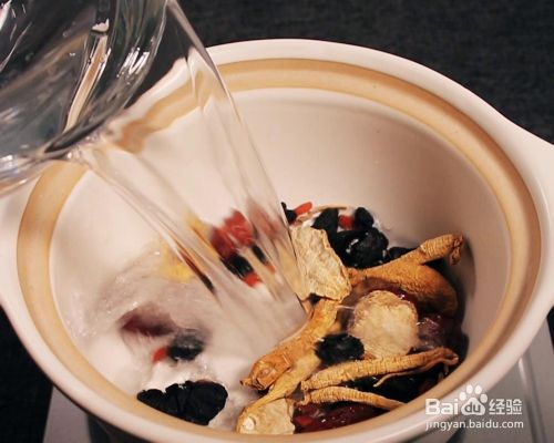 将准备好的人参、猕猴桃、桑椹、黄精、红枣和枸杞加水。
