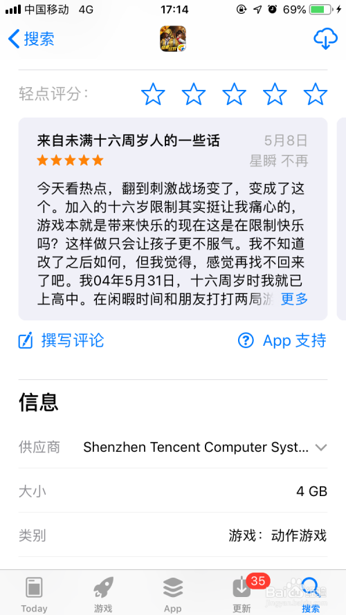 第二步,打开appstore哦搜索您想要下载的应用,如图所示想下载和平精英