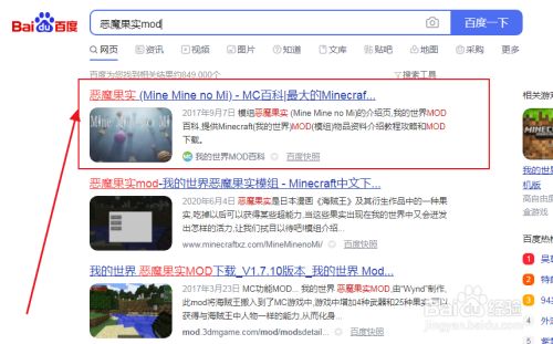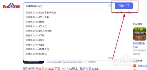 步骤二,在百度搜索框,输入恶魔果实mod。