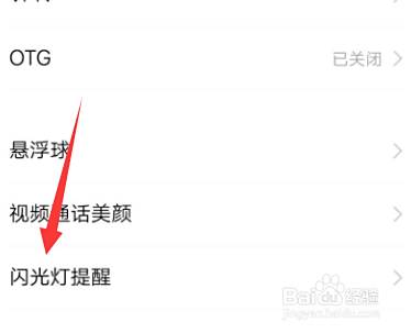 在弹出的页面,找到并点击闪光灯提醒。