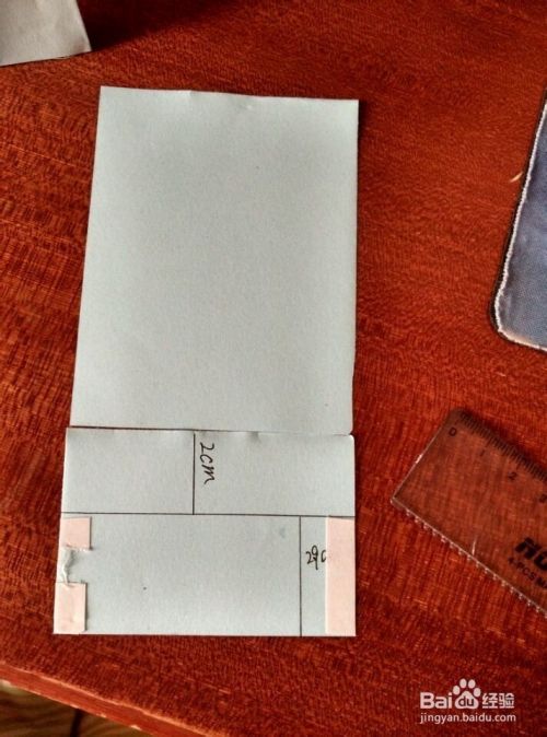 把折好后的长方形,往上翻。然后把另一半彩纸,按照上方2cm,下方2.9cm的长度进行测量做标记。把2.9cm的长度粘上双面胶,上方对折双面胶大小的宽度,裁剪掉即可。