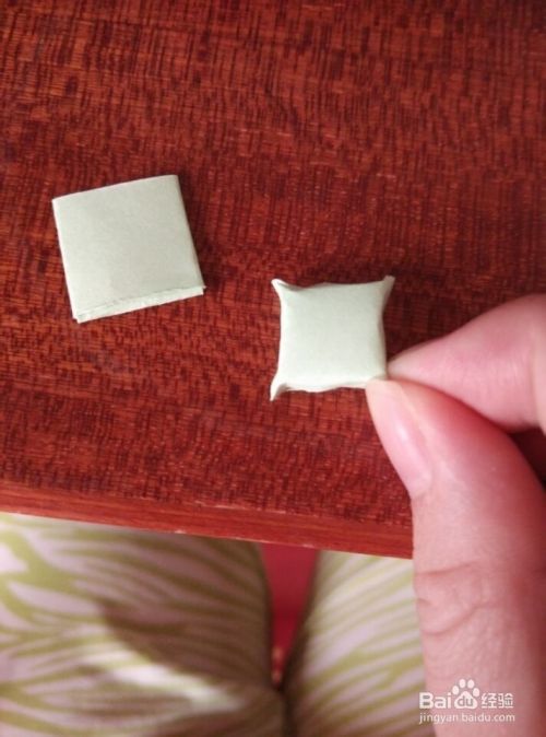 把一个长条放在另一个长条上方,一直折叠,到之后多余的部分,塞在细缝里即可。同样的步骤,再操作另外两张长条,两个正方体就出来了。往正方体的4个边缘一捏,2个小立体的枕头就出来了.