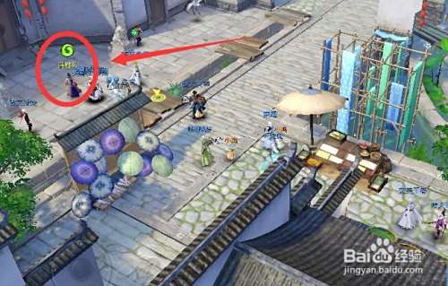 穿过市集继续往西面走,我们可以看到一个买伞的小摊,在这个小摊的后面就能看到我们要找的任务人蒲村长