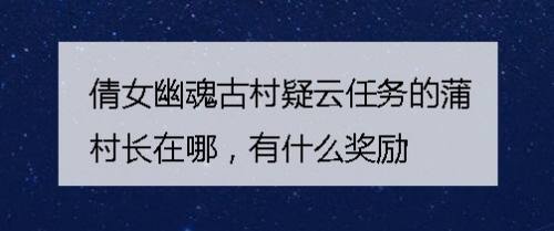 倩女幽魂古村疑云任务的蒲村长在哪,有什么奖励。古村疑云任务是倩女幽魂新手阶段的主系任务,任务完成可以得到丰富的奖励