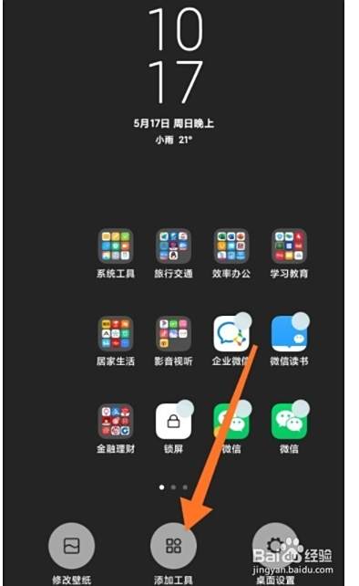 1、打开手机,在桌面双指捏合,进入桌面编辑状态。