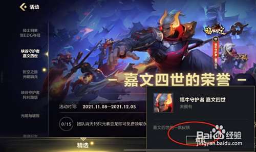 完成任务后,返回活动页面,即可领取嘉文四世的荣誉皮肤。