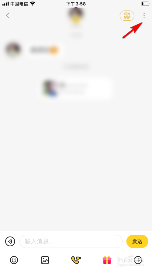 进入聊天对话后,点击右上角省略号的图标。