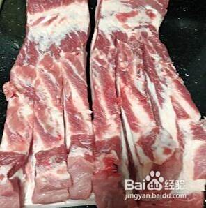 找一个干净的容器,洗净擦干,肉盘厚的地方割几刀,如图二