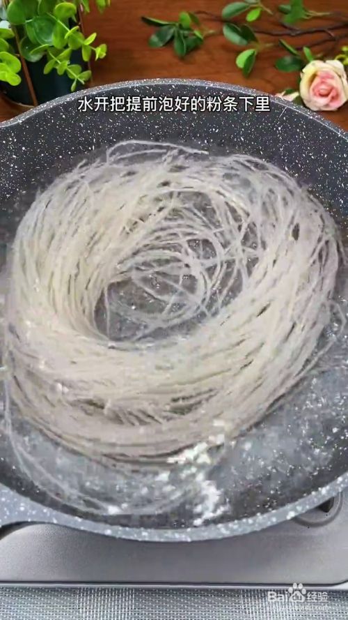 锅中烧热水,水开放入红薯粉丝煮熟,调料中舀入适量的汤水,加入粉丝