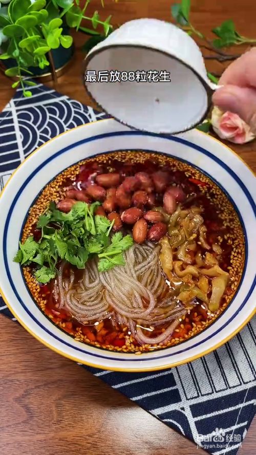 最后在上面放上适量的香菜,花生米和榨菜碎,搅拌好就能享用啦