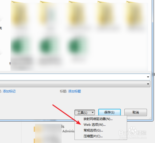 打开另存为窗口,点击【工具】按钮,选择【WEB选项】