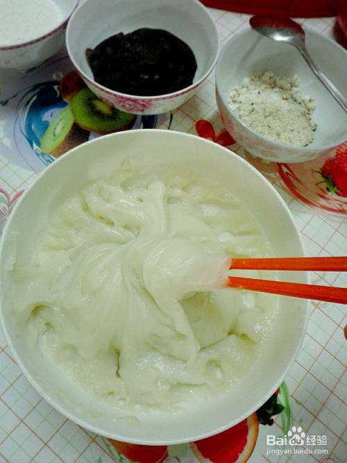 蒸好以后的糯米团,像打年糕一样,用筷子或者手去挫,确保弹性十足。