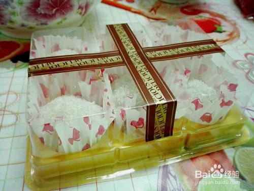 将将将将~将弄好的糯米糍放入准备就绪的纸托中,看美美哒~
