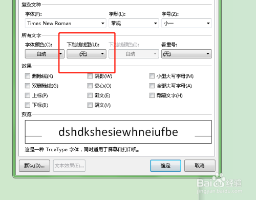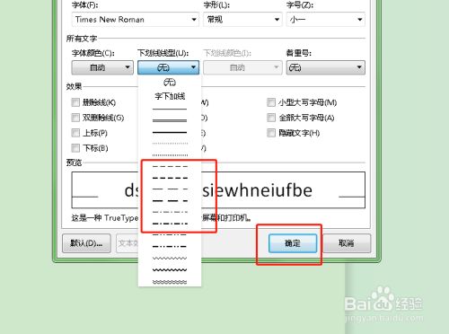 点击下划线,然后选择合适的下划线类型,选择完成后,点击最下方的确定键即可完成。