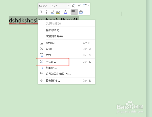 然后单击鼠标右键,选择其中的字体。
