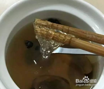 3、尝口感 未熟的燕窝口感偏脆,极为Q弹,吃着有些像粉丝,而熟了的燕窝口感稍软弹,丝滑爽口,硬度比较像吃果冻,如果煮的久一点就跟吃雪燕差不多了。