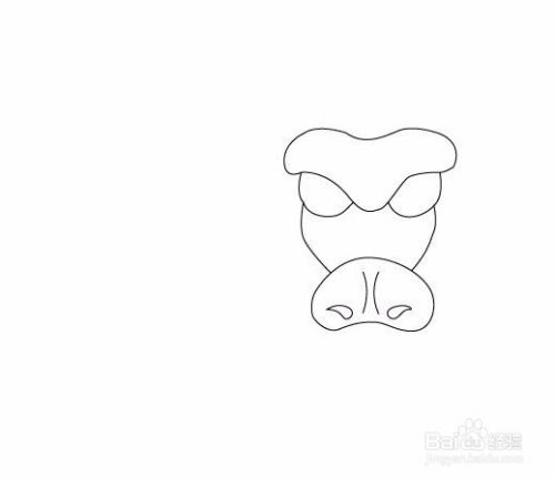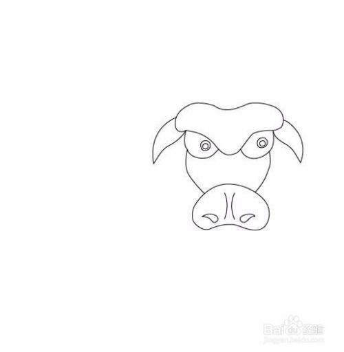 在鼻子的基础上画出大牤牛的头部和眼睛轮廓线,如图所示: