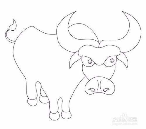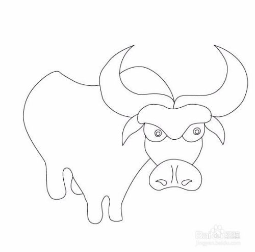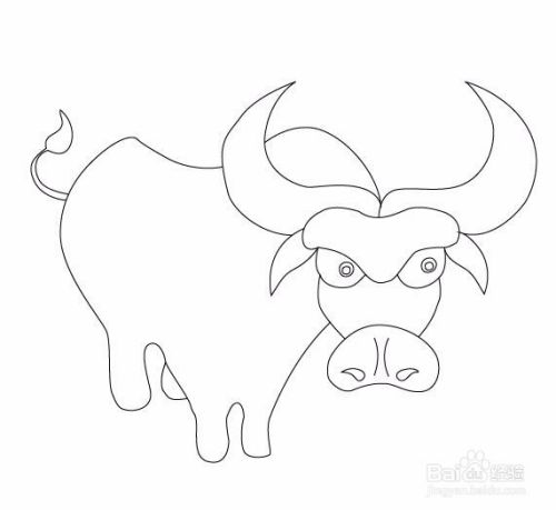 在头部的基础上再画出大牤牛的身体和四肢,如图所示: