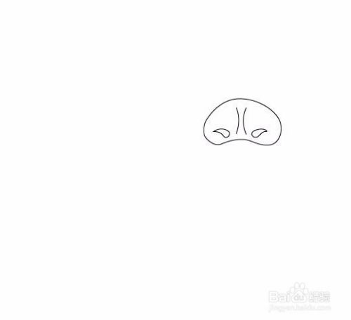 首先我们在AI的工具箱内找到钢笔工具,使用钢笔工具绘制出大牤牛的鼻子,再在鼻子上画出大牤牛的鼻孔,如图所示: