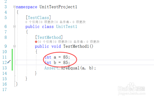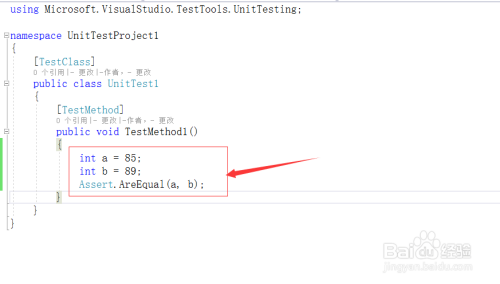 我们在其中添加一些代码,然后通过Assert断言类的方法来测试,如下图所示:
