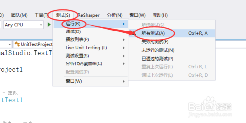 依次点击菜单栏中的“测试”->“运行”->“所有测试”,如下图所示:
