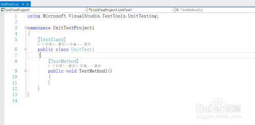 项目的目录结构中,默认包括一个名为UnitTest1.cs类,如下图所示: