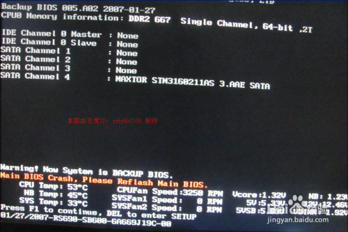 具体操作是,开机或者重启电脑,在下面这个界面(下图所示)时按del按键,当然有的主板可能不一样,自己根据实际来选择对应按键。