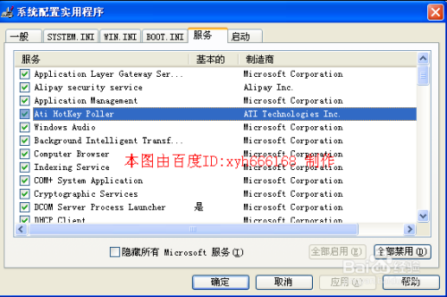 另外再“服务”的选项里面,我也可以将一些不需要的服务给禁止掉,如下图三所示