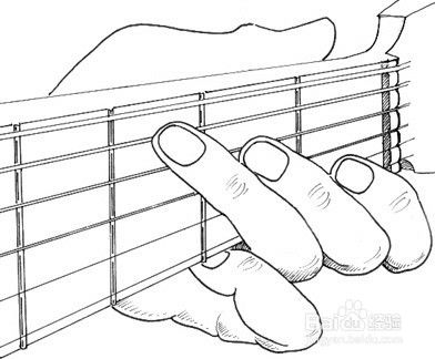 右手负责的位置:如上图所示右手无名指:负责上拨第1弦(最细的那一条弦)右手中指:负责上拨弦2弦右手食指:负责上拨弦3弦右手大拇指:负责下拨弦4弦右手大拇指:负责下拨弦5弦右手大拇指:负责下拨弦6弦(最粗的那一条弦)