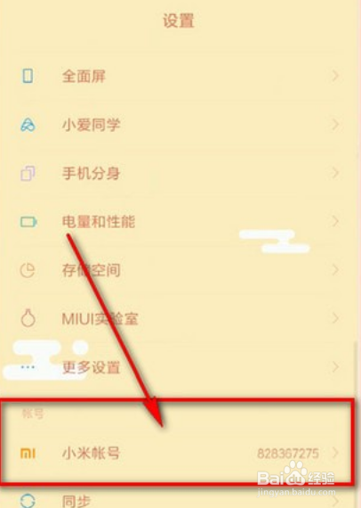 进入设置页面中,点击【小米账号】选项。