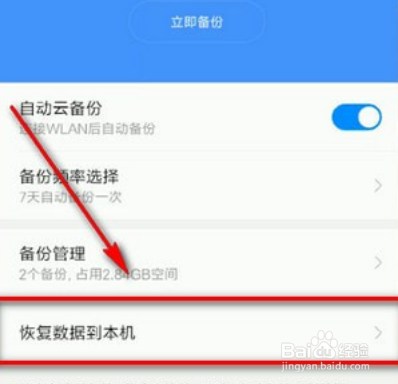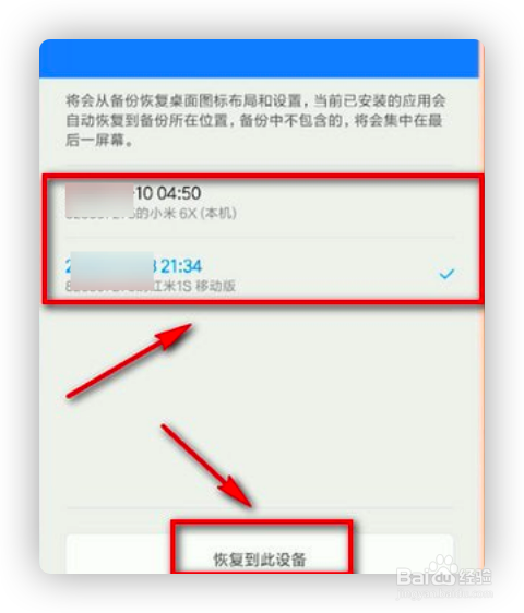 选择想要恢复到自己手机在小米云在的数据,点击【恢复到此设备】。