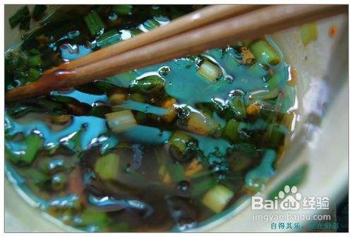 料汁需要的东西有:小香葱、姜末、一勺盐、少许白糖、少许香油、两三勺生抽、一大勺蚝油、食用油一大勺