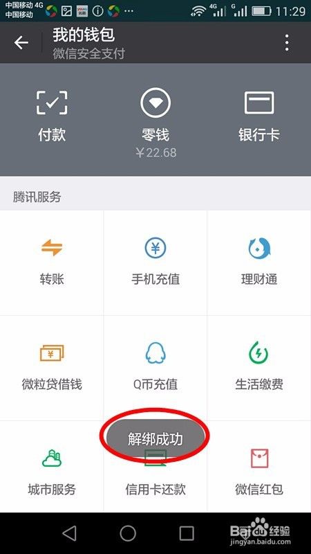 自2016年3月1日起计算,每位用户(身份证维度)有累计1000元免费提现额度,超出1000元部分按银行费率收取手续费,费率均为0.1%,每笔最少收0.1元。微信红包、AA收款等其他功能不受影响,继续免收手续费。如此一来,许多微信用户都会因此选择解绑银行卡,如何解绑银行卡也成了微信用户的麻烦,下面给大家介绍方法。