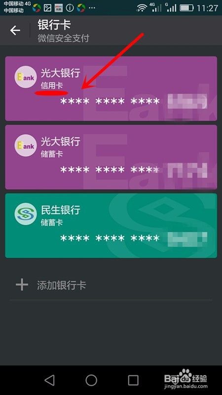 第四步:在独著【银行卡】页面,可以看到你绑定过的银行卡,然后,选择你需要解绑的银行卡,我这里绑定有3张,选择需要解绑的银行卡,我这里有张信用卡在微信里面是用不到的,所以我选择解绑,如图。