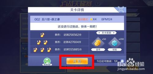 我们点击下面的“挑战”菜单,出现音符奖励说明,了解后就可以直接开始。