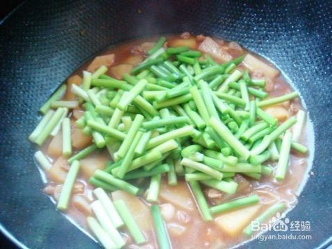 锅里放油,放入葱、姜、肉片翻炒,添加料酒、酱油