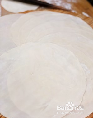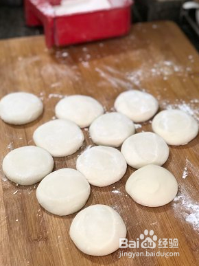 分成50克一个的剂子,按扁。就像饺子皮剂子一样