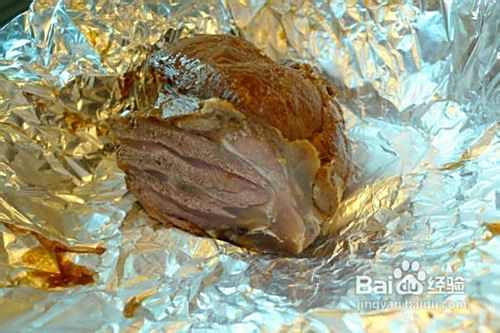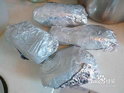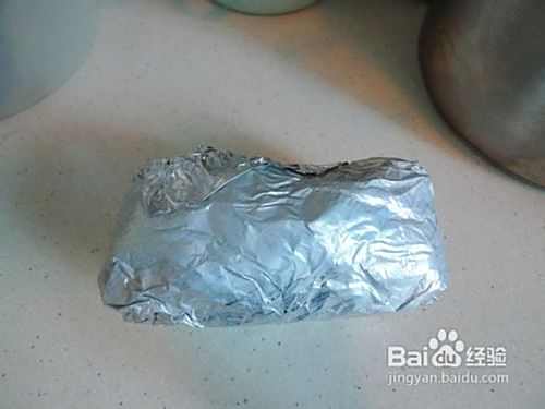 准备锡箔纸,肉肉放凉后,按照肉的形状包裹紧,一定要包严实,才能定住形