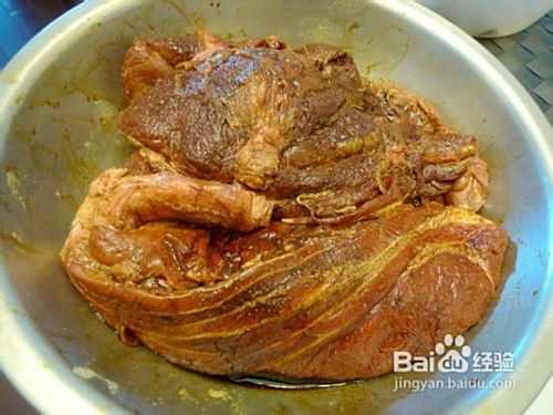 先将牛肉加入调料腌制,在肉肉上扎眼,用手按摩,让调料的味道全面均匀的渗入肉质中。腌制大约2个来小时