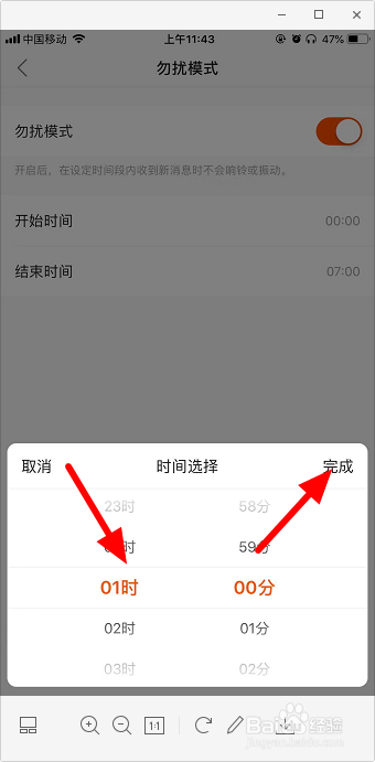 根据自己的情况调整时间,然后点击【完成】,结束时间也一样设置就可以了。