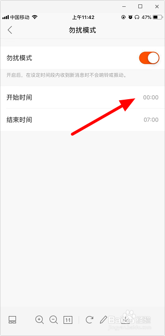 这样就打开勿扰模式了,可以点击【开始时间】。