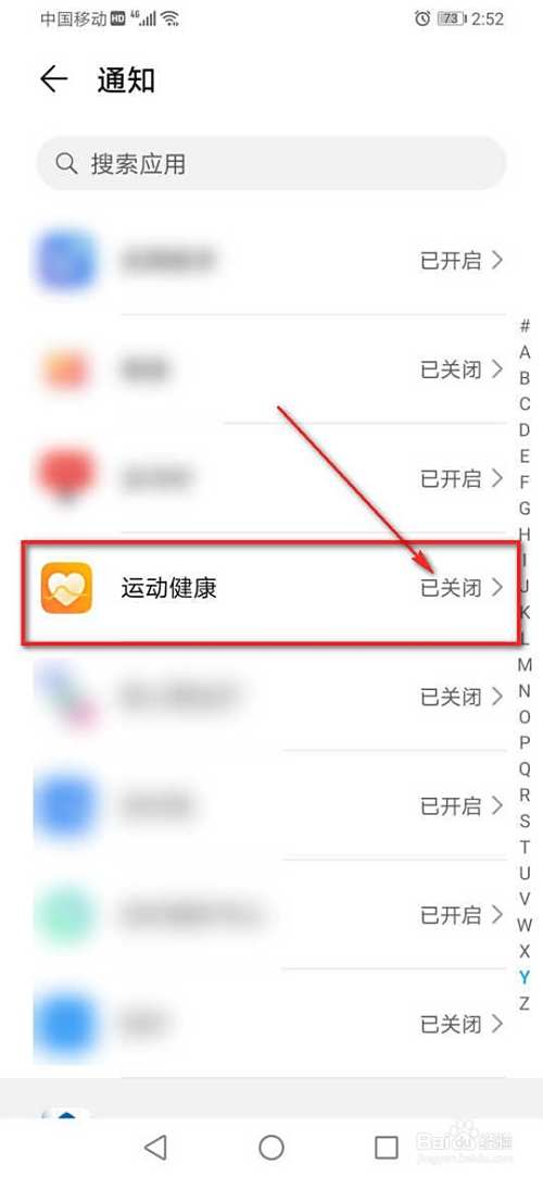 第二步:点击“运动健康”,点亮“允许通知”旁的小滑块。