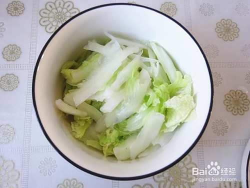 用手把白菜撕成手指般的条状,不要刀切哦。撕好后轻轻攥一下,攥出去点水分。