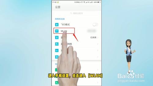 打开手机,点击设置,然后点击无线和网络,之后点击WLAN