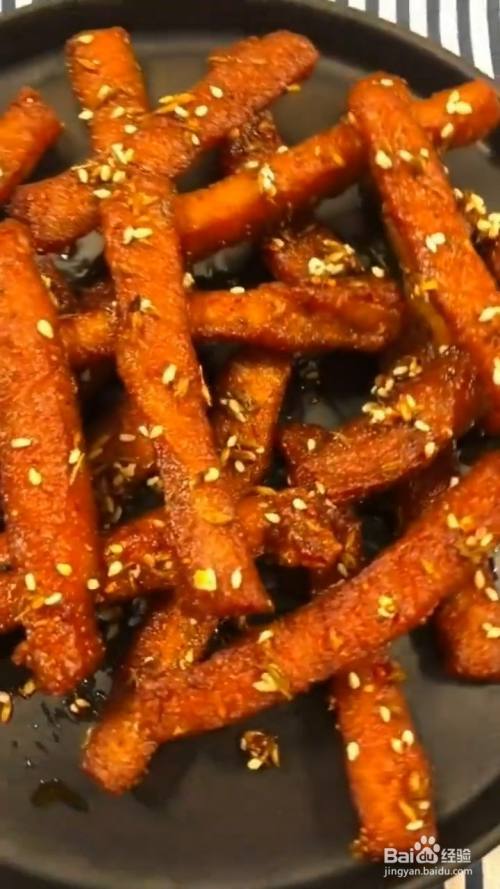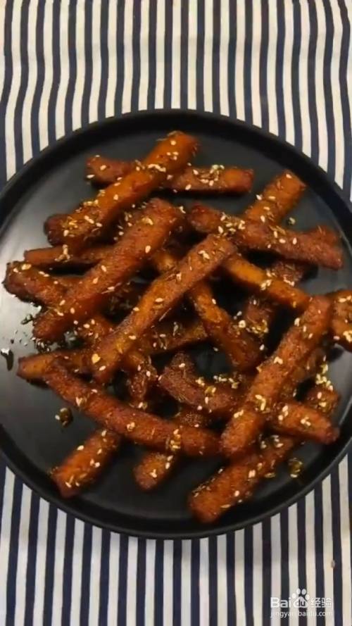 六层油温下入锅中,炸至金黄捞出控油,锅中热油,放入2克孜然,2克芝麻,2克辣椒粉,倒入里脊肉翻炒均匀即可